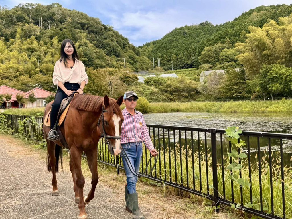 かいづかいぶきヴィレッジに馬がやってきました!乗馬体験を行っていただくことができます。池まわりコース 1名2,500円※グランピング宿泊者は500円OFF事前予約制になりますので、お気軽にお問い合わせくださいませ。