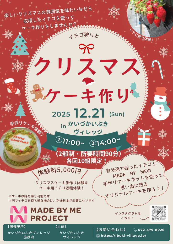 かいづかいぶきヴィレッジで、イチゴ狩りとクリスマスケーキ作りを一緒に楽しみませんか?😊